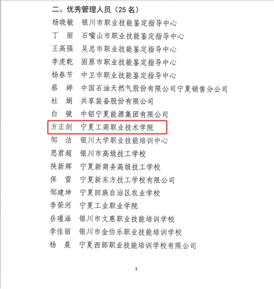 12月4日,自治區人力資源和社會保障廳召開全區技能等級認定工作管理人員培訓班。自治區人力資源和社會保障廳黨組成員、副廳長葛向東等領導出席開班儀式。會上宣讀了《關于對2024年全區優秀職業技能等級認定機構和個人進行表揚的通報》并進行授牌表揚,我校榮獲自治區優秀職業技能等級認定機構和優秀管理人員。