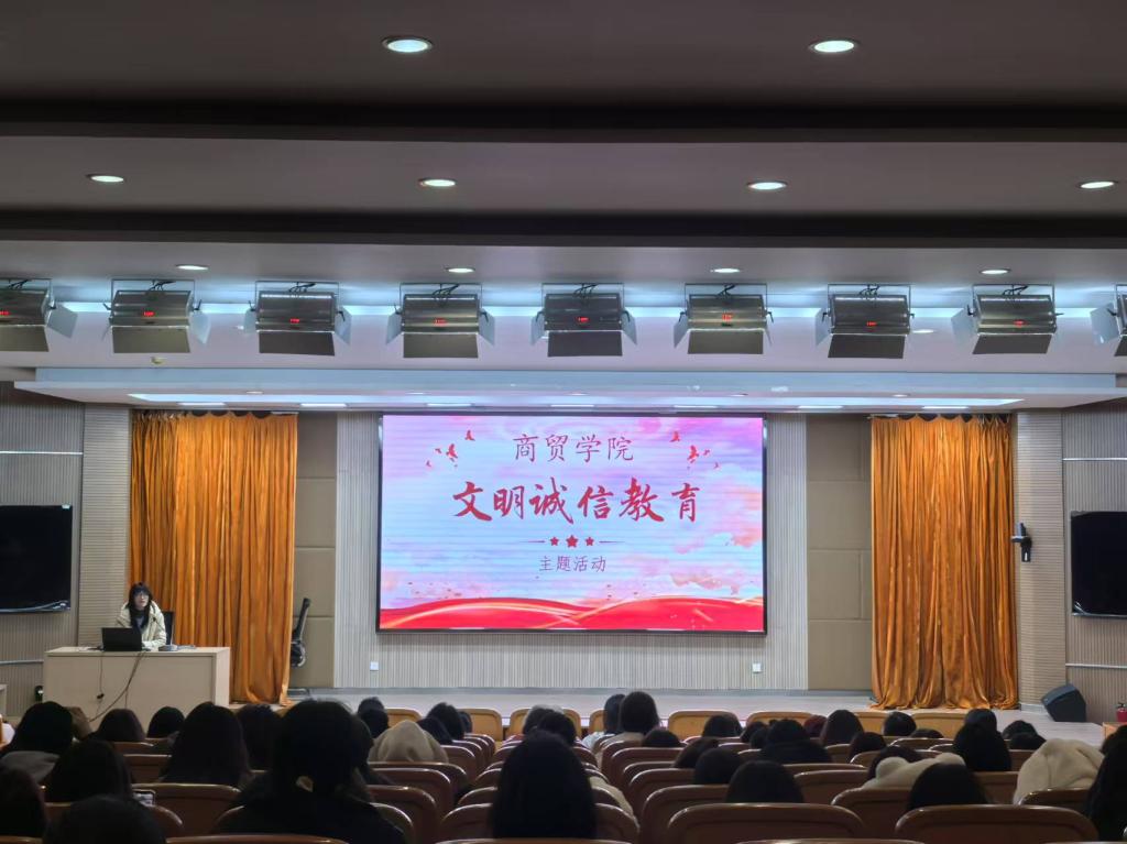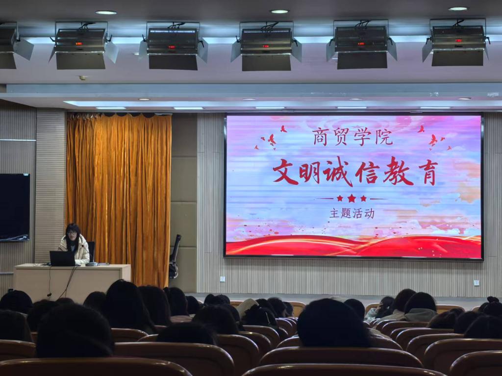 12月11日下午,商貿學院在圖書館報告廳舉辦了一場以“文明誠信,鑄就未來”為主題的文明誠信教育講座。此次講座由學辦主任趙春燕主講,2024級全體學生參加了此次活動。