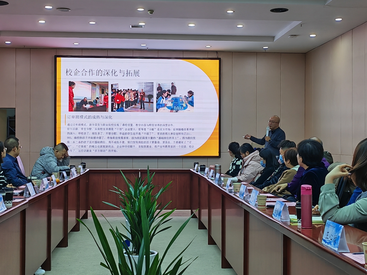 隨后,新百物流總經理趙軍龍、中關村總經理于淑婷、京東人事負責人許彬分別就新百物流校企合作的歷程和未來合作的展望、京東產教融合協同育人的成功案例、中關村產業發展與職業教育等方面進行了分享。郝殿君、趙軍龍、于淑婷、李興盛、張偉等企業高管圍繞專業發展及培養模式進行了深入討論,提出要注重學生的工匠精神、職業素質等方面的培養,為提高人才培養質量提供了寶貴的建議。