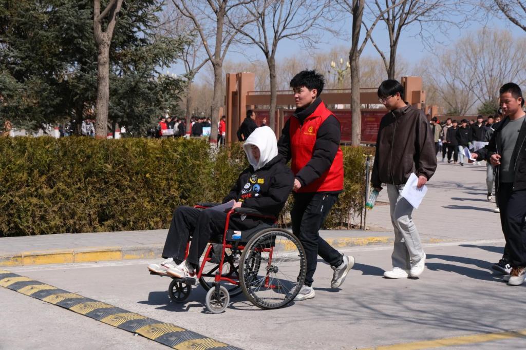 寒風(fēng)中的溫暖守護(hù)。考試首日清晨6:50,圖文信息廣場已亮起匠心曙光志愿服務(wù)隊的紅色身影。45名志愿者在-5℃的寒風(fēng)中堅守崗位,有條不紊地開展考生身份核驗、考場路線指引、號碼牌的發(fā)放等工作。候考區(qū)內(nèi),志愿者有序收取保管考生手機(jī)和貴重物品。考場內(nèi),他們化身“協(xié)理員”,協(xié)助完成現(xiàn)場服務(wù)工作。日均步數(shù)超2萬步的忙碌身影,成為考場內(nèi)外最動人的風(fēng)景。