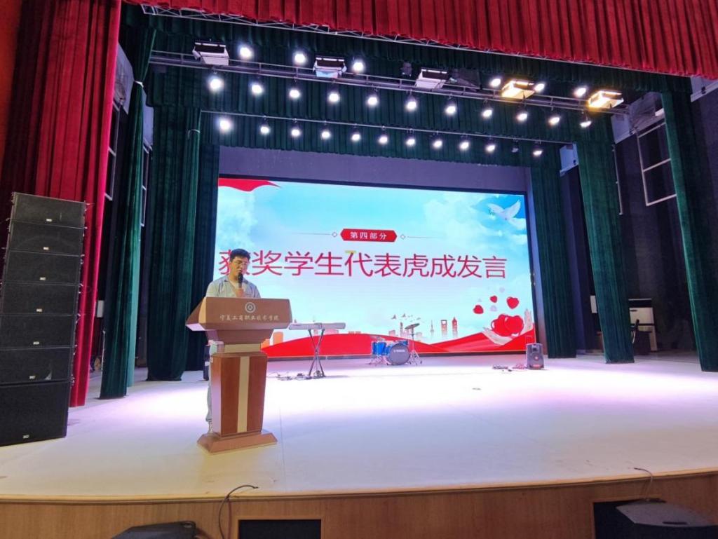 國家勵(lì)志獎學(xué)金獲得者虎成作為學(xué)生代表發(fā)言,他分享了自己在資助政策支持下克服困難、勤奮學(xué)習(xí)的經(jīng)歷,感謝國家、學(xué)校和老師的關(guān)懷,并表示將以實(shí)際行動踐行責(zé)任與擔(dān)當(dāng),努力成為對社會有用的人才。