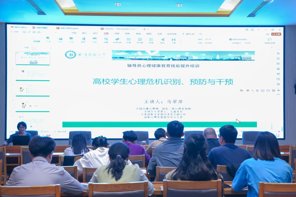 為進一步加強學工隊伍心理健康工作技能,5月14日下午,學院邀請北方民族大學學生處心理發展指導中心副處長馬翠萍開展了“大學生心理危機預防與干預工作能力提升”專題培訓。副院長張安軍、學生處及心理健康中心相關教師、全體專兼職輔導員共80余人參加了此次培訓。