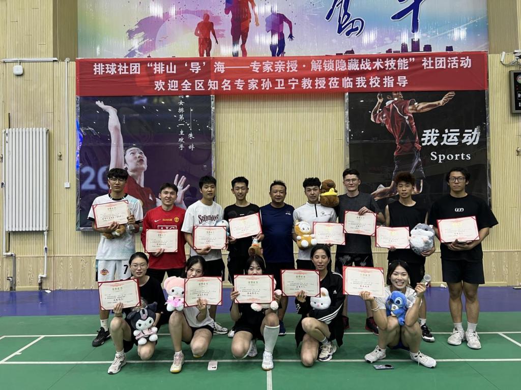 活動中,孫衛寧教授從基礎的發球、接球、傳球,到難度較高的扣球、攔網技巧,再到復雜的戰術配合,循序漸進地幫助學員提升能力。在訓練過程中,學員們熱情高漲,認真聽從教練指導,反復練習技術動作,針對每個學員的問題進行一對一指導,糾正動作偏差,講解技術要點。隨后,社團成員進行了分組對抗賽,以“新老成員搭檔”形式組織友誼賽,通過實戰演練強化戰術配合,激發競爭意識。并在對抗賽中,評選出來了“最佳球員”“最佳攻手”“最佳防守人”等個人獎項,并對獲得榮譽的同學進行了頒獎。