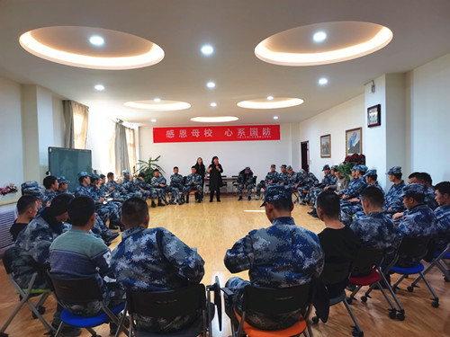 為了提高2018級士官生心理適應能力及自我效能感,12月25日下午,學校心理健康中心特請寧夏大學心理中心秦莉副教授來我校開展了兩場“感恩母校、心系國防”團體心理輔導活動。學校心理中心范麗萍老師主持此次活動,電控學院2018級士官班參加了本次團輔。