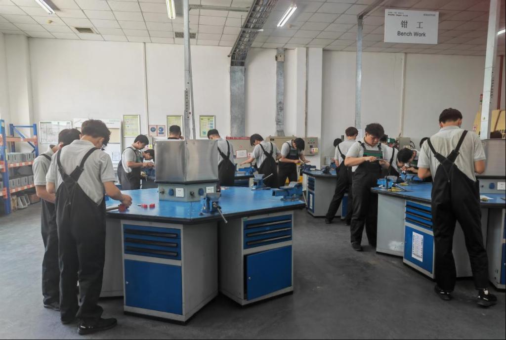 當天正值訂單班期末考試,采用 “技能操作” 形式,試卷涵蓋結果與過程評價,注重學生合作態度,觀摩團現場查看試卷。隨后,舍弗勒培訓中心主任李國基介紹了企業全球布局、寧夏基地業務及技術優勢,著重闡述與機械工程學院合作的數控技術班 “雙元制” 工學交替培養模式,該模式將技術標準、職業素養融入教學,結合企業文化助力學生成長。機械工程學院副院長王愛平分享 “訂單班” 合作機制與育人成果,學生在企業學習熱情高,專業技能和職業素養顯著提升。 薛新巧副校長充分肯定訂單班模式的創新價值,感謝企業的育人擔當,強調該模式為學生明確職業方向,要求各學院借鑒經驗深化產教融合,并表達長期合作意愿。最后觀摩團還參觀了企業生產車間。