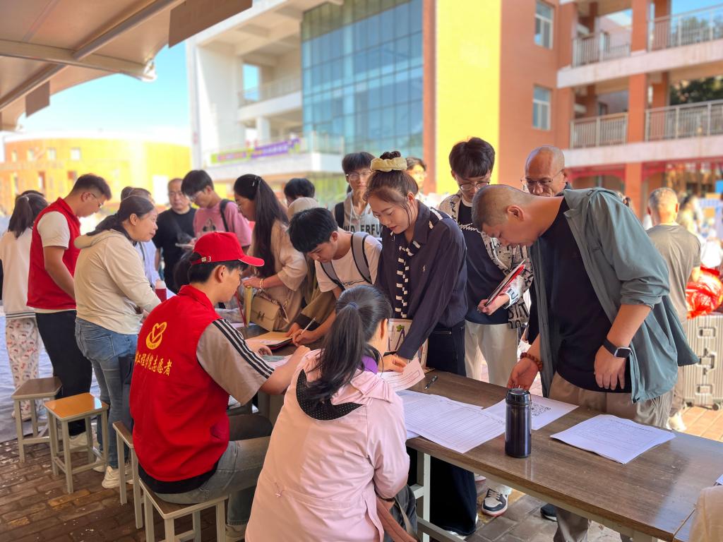 清晨7時,晨光初露,學院領導班子、全體輔導員及志愿者已全員到崗,迅速投入迎新準備工作。從迎新點位科學規劃、流程指引標識精準張貼,到物資分發清單核對、咨詢服務臺搭建調試,各項工作井然有序,用細致的籌備迎接新生與家長。8時,新生及家長陸續抵達,工作人員與志愿者即刻進入 “全服務模式”:有人手把手指導新生填寫登記信息、辦理入學手續,有人耐心解答專業課程設置、宿舍生活保障等疑問,有人主動接過行李一路護送,暖心服務讓報到現場暖意涌動,高效流程更獲家長與新生一致認可。