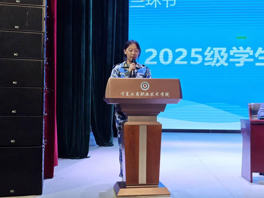2025級學生代表魏晨鈺在發言中分享入學感受,表達對專業學習的期待與奮斗決心,展現出新時代大學生昂揚向上的精神風貌。