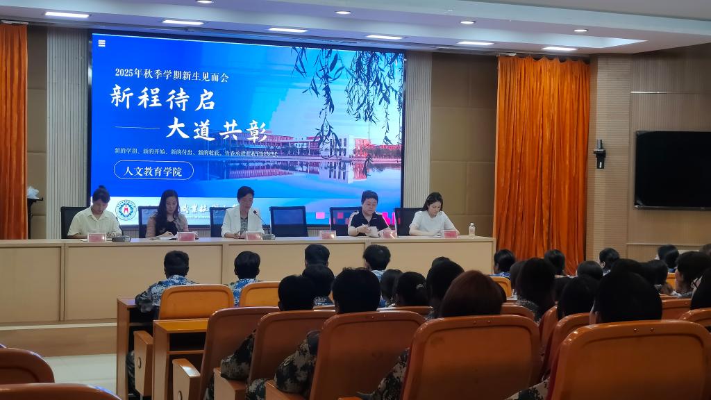 9月3日下午,人文教育學(xué)院在圖書館報(bào)告廳隆重召開新生見面會(huì)暨開學(xué)第一課,學(xué)院班子成員、全體學(xué)工人員與2025級(jí)全體新生齊聚一堂,共同開啟新同學(xué)的大學(xué)成長(zhǎng)新篇章,會(huì)議由學(xué)辦主任劉愛(ài)琴主持。