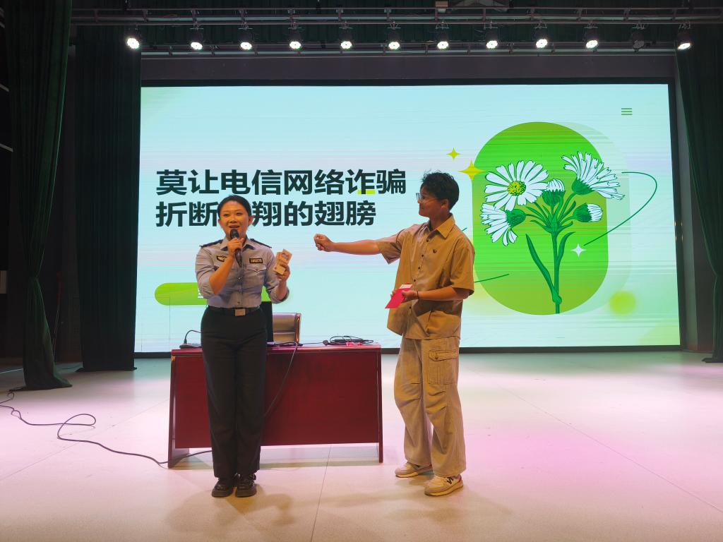 鄒警官結合真實案例,深入淺出地進行了“防電信詐騙”的教育講座,主要講解了常見的電信詐騙類型,如“刷單返利”“冒充公檢法”“虛假投資理財”“校園貸陷阱”等。她通過身邊案例講解、分析詐騙話術,揭露了犯罪分子的慣用伎倆,并提醒同學們:“天上不會掉餡餅,凡是涉及轉賬、索要驗證碼的,一定要提高警惕,做到‘不聽、不信、不轉賬’。”