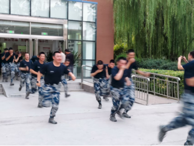 傍晚7點,演練模擬軍士樓內某房間突發火災。工作人員第一時間啟動火災自動報警系統,尖銳急促的警報聲瞬間響徹整個軍士樓。軍士生們反應迅速,立即用提前準備好的濕毛巾捂住口鼻,以標準的彎腰低姿姿勢,沿著樓梯快速且有序地向樓下疏散,短短5秒內,全體士官生和相關工作人員便全部安全疏散至指定安全區域。