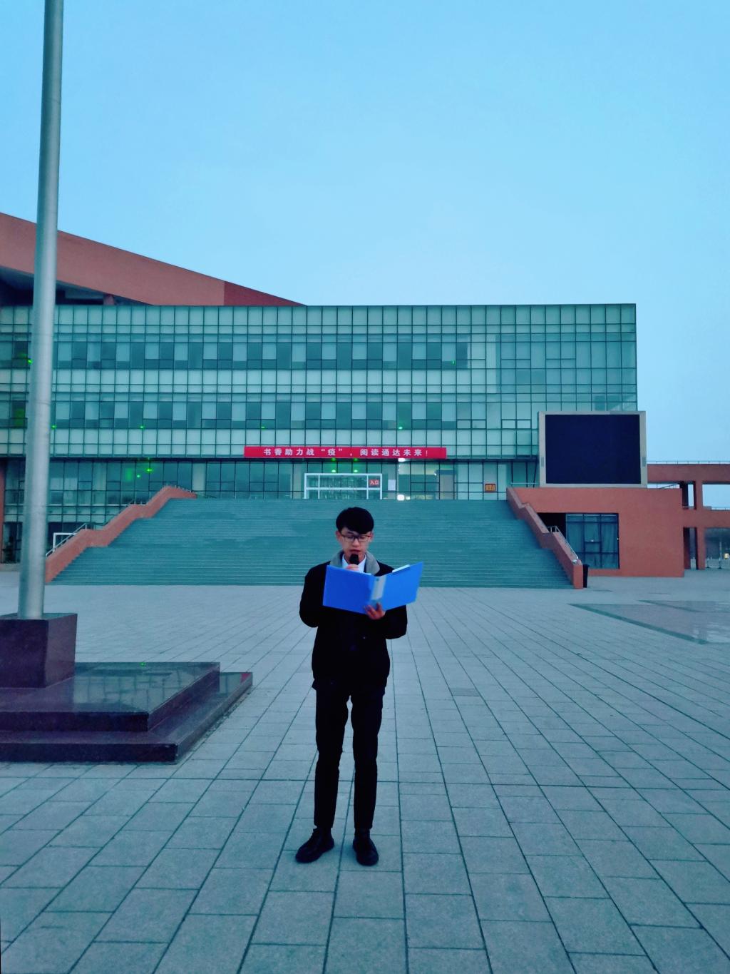 教師代表李冀超在國旗下發言,他希望全體學生要爭做黨的十九屆五中全會精神的宣傳者、實踐者;勇做新時代愛國主義的弘揚者、踐行者;誓做民族復興進程中的先鋒力量,在建設新時代中國特色社會主義事業的偉大征程中譜寫出更加壯美、更加絢麗的青春。
