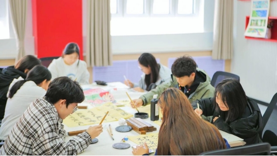 在文化活動圈,非遺傳承手工社團、“磚心”雕藝社團、書畫協會成為現場焦點。在指導教師的帶領下,社員們緊扣“鑄牢中華民族共同體意識”“民族團結”“校園四季”三大主題,以紅紙為媒,巧剪石榴籽、山水花鳥、校園風光等精美紋樣,讓傳統剪紙技藝與青春創意碰撞出絢麗火花;書畫協會以筆墨傳情,既通過篆隸楷行各類書法作品與寓意鮮明的繪畫創作勾勒家國情懷,更聚焦“廉潔文化”主題,生動詮釋清正廉潔的深刻內涵,在“一站式”學生社區內營造崇廉尚潔、風清氣正的文化氛圍。