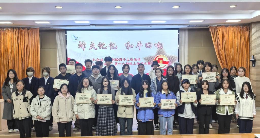 為引導廣大新生深刻銘記中國人民抗日戰爭暨世界反法西斯戰爭勝利80周年的偉大歷史意義,圖書館面向新生開展了“烽火記憶·和平回響”——紀念中國人民抗日戰爭暨世界反法西斯戰爭勝利80周年線上主題誦讀比賽,并于10月30日舉行了頒獎儀式,圖書館館長張洪迪為獲獎新生頒發獎狀。