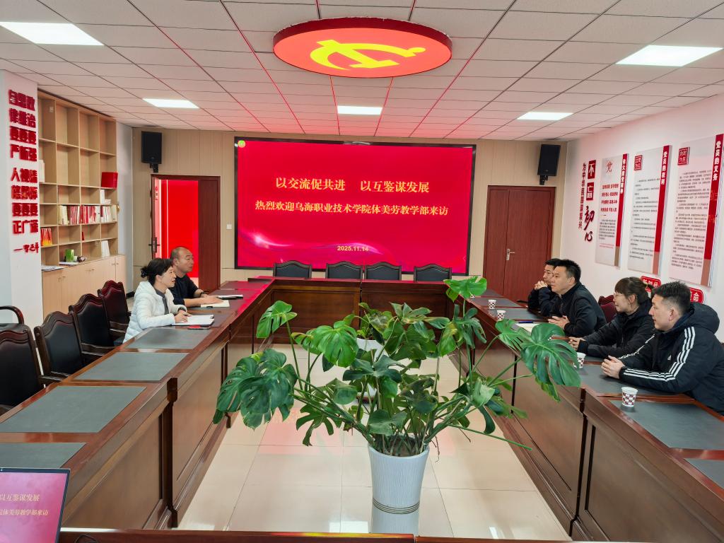 11月14日,烏海職業技術學院體美勞教學部副主任馬昕一行6人到學校人文教育學院進行考察調研,人文教育學院院長董麗華、副院長何銀景及相關教研室負責人陪同。