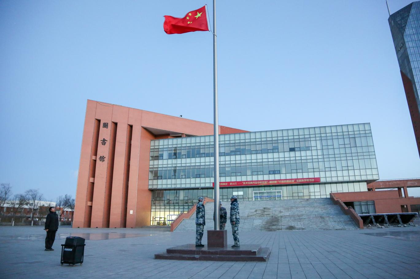 清晨,伴隨著朝陽升起,國旗護衛隊邁著鏗鏘有力的步伐,護送國旗入場。在莊嚴的《義勇軍進行曲》中,五星紅旗冉冉升起,全體師生肅立注目,行注目禮,心中涌動著對祖國的無限崇敬與熱愛。