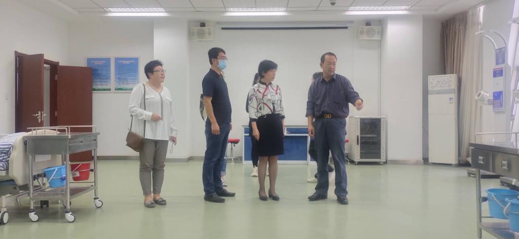 寧副校長一行在寧夏老年人服務中心主任趙琨、副主任蔣華的陪同下先后參觀了中心的技能鑒定培訓室、遠程教育培訓室及照護綜合實訓室,并就服務中心的基本職能、鑒定設備、培訓師資、經營狀況及人才培養、校企合作等方面議題進行了座談。