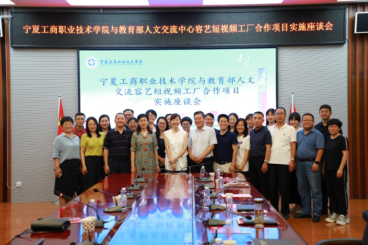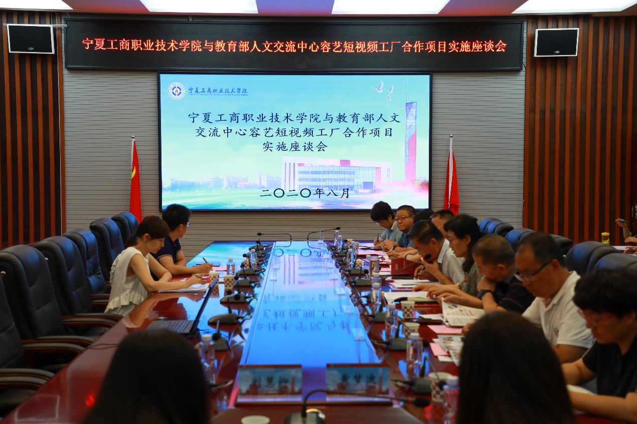 寧夏工商職業技術學院作為教育部人文交流中心容藝短視頻工廠項目首批立項院校,為盡快推動人文交流容藝短視頻工廠項目落地實施,信息技術學院與容藝教育集團積極溝通,2020年8月20日下午,在5號樓二樓會議室順利召開了教育部人文交流容藝短視頻工廠合作項目實施座談會。容藝教育集團創始人及CEO李霞和副總裁汪劉芳,以及關世春校長、宋瑩副校長、陳志懷副校長、信息技術學院班子成員和數字媒體教研室全體老師參加了座談。