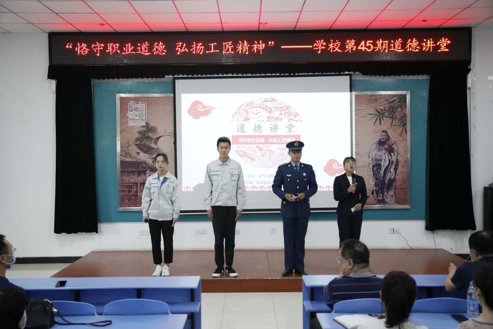 根據學校2020年度道德講堂工作安排,由電氣與控制工程學院黨總支承辦,職業技能鑒定所、圖書館、信息網絡中心協辦的學校第45期道德講堂,于6月10日下午在清風園如期舉辦。本次講堂以“恪守職業道 ,弘揚工匠精神”為主題,近200名師生共同參加了活動。