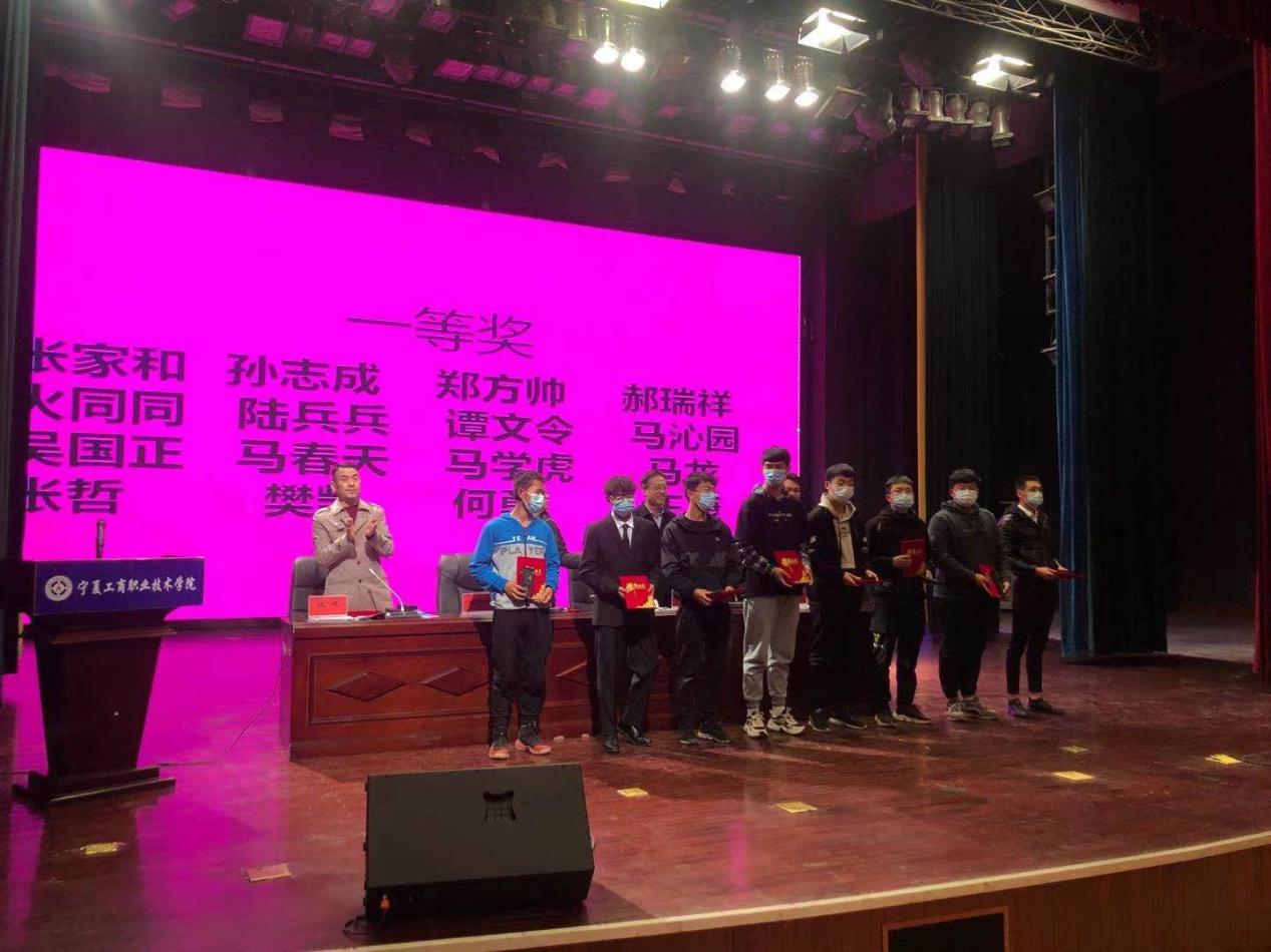 圖2 電控學(xué)院領(lǐng)導(dǎo)與企業(yè)領(lǐng)導(dǎo)為獲獎(jiǎng)學(xué)生頒獎(jiǎng)