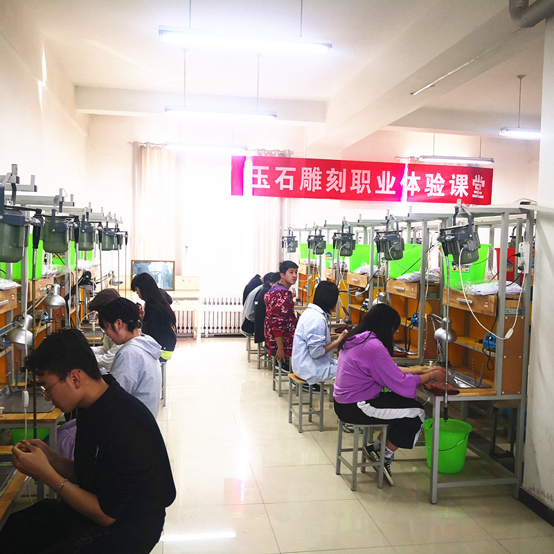活動(dòng)分為參觀珠寶玉石博物館、聆聽(tīng)中華玉文化講座、欣賞學(xué)生雕刻作品展室及體驗(yàn)玉石雕刻工藝四個(gè)部分。走進(jìn)珠寶玉石博物館,同學(xué)們立馬被琳瑯滿目的珍貴珠寶原石及飾品所吸引。在扈潔老師的講解下,同學(xué)們欣賞珠寶玉石的自然之美,了解它們的地質(zhì)成因及結(jié)構(gòu)構(gòu)造。在玉文化大講堂中,王慧文老師為同學(xué)們講述了中華玉文化的起源及發(fā)展歷史。她告訴同學(xué)們中華玉文化作為中華優(yōu)秀傳統(tǒng)文化的重要組成部分,深受世人的喜愛(ài)和推崇,主要原因就是孔子提出的“君子比德如玉”的思想。學(xué)生玉雕作品展室中收藏著歷屆寶玉石專(zhuān)業(yè)學(xué)生的實(shí)訓(xùn)作品及畢業(yè)設(shè)計(jì),作品所體現(xiàn)出的設(shè)計(jì)美、材質(zhì)美和工藝美讓同學(xué)們對(duì)寶玉石專(zhuān)業(yè)學(xué)生的高超專(zhuān)業(yè)技能贊嘆不已。最后,同學(xué)們?cè)谟竦耋w驗(yàn)室進(jìn)行了雕刻體驗(yàn)活動(dòng),通過(guò)自主獨(dú)立完成玉器的打孔、拋光及配繩,同學(xué)們了解了玉石的雕刻工藝流程。同學(xué)們紛紛表示琢玉之道好似成才之路,成功是需要不懈的努力和付出的。