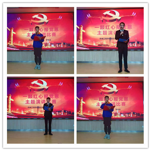 機械工程學院全體同學積極報名、踴躍參與。在比賽中選手們演講內(nèi)容豐富多彩,緊扣主題;演講語言生動、有感染力、聲情并茂,歌頌了中國共產(chǎn)黨成立以來領導全國人民在革命、建設和改革進程中所取得的偉大成就。選手們在演講中進一步堅定了理想信念,筑牢了信仰根基,樹立了為實現(xiàn)中華民族偉大復興而努力奮斗的遠大理想,比賽在全體學生《沒有共產(chǎn)黨就沒有新中國》的歌聲中結束。