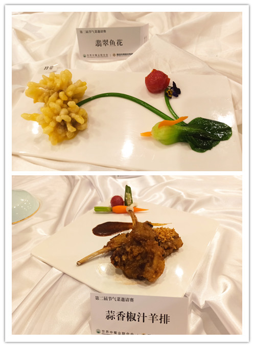此次比賽為團體賽,每隊三人,制作兩道熱菜和一道面點,菜點設計思路需圍繞谷雨、立夏、小滿等節氣,比賽時間為100分鐘。寧夏共派出寧夏工商職業技術學院和寧夏郎澤餐飲有限公司2支代表隊參賽,選手通過精心設計,呈現出一道道精美節氣菜肴。