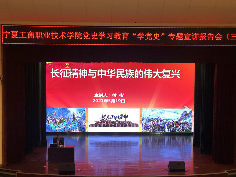 為了慶祝建黨100周年,在全體學生中深入開展黨史學習教育。近期,學校黨委委員、紀委書記付彬在圖書館報告廳為機械工程學院學生作了題為《長征精神與中華民族的偉大復興》的專題報告會。