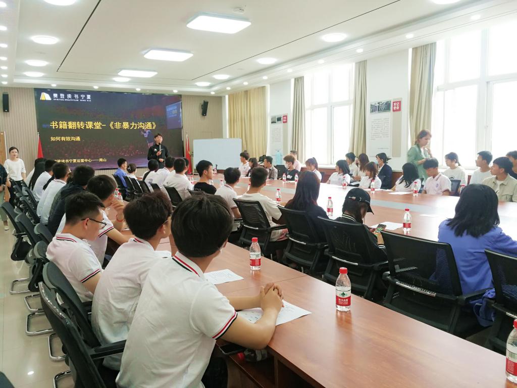 本次活動以“非暴力溝通”為主題,以能源化工學院學生為主場以及來自各二級學院共50余名學生參加了活動。在樊登讀書會金牌翻轉講師周山的精彩講解中,大家了解了什么是暴力溝通,如何區分事實與觀點、感受與判斷,進行非暴力溝通需要注意哪幾個方面,提醒我們專注于彼此的觀察、感受、需要和請求,鼓勵傾聽,培育尊重與愛,并通過背面傳字等小游戲讓學生們領悟到溝通的重要性以及如何有效的傾聽。在感悟分享環節,同學們踴躍發言,就如何更好地與人溝通發表了自己的觀點。最后,講師向同學們分享了《關鍵對話》、《高績效教練》等相關書籍。活動現場始終氣氛熱烈、情緒高漲,大家與書為伴,以書會友,在分享交流中領略到語言的魅力,共同度過了一段愉快的閱讀分享時光。