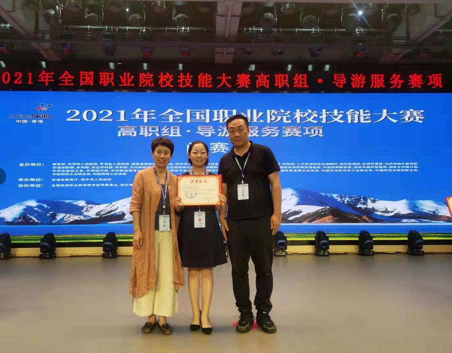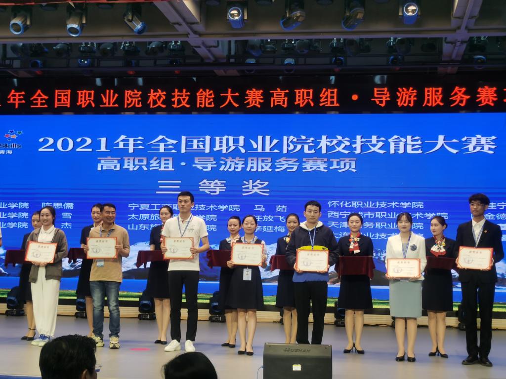 6月23日,2021年全國職業(yè)院校技能大賽高職組導(dǎo)游服務(wù)賽項在青海省西寧城市職業(yè)技術(shù)學(xué)院落下帷幕,來自全國各地的32支代表隊進(jìn)行了導(dǎo)游服務(wù)專業(yè)技能展示和競賽。由旅游管理學(xué)院孫賀峰老師指導(dǎo)的馬茹同學(xué)獲得了賽事三等獎。