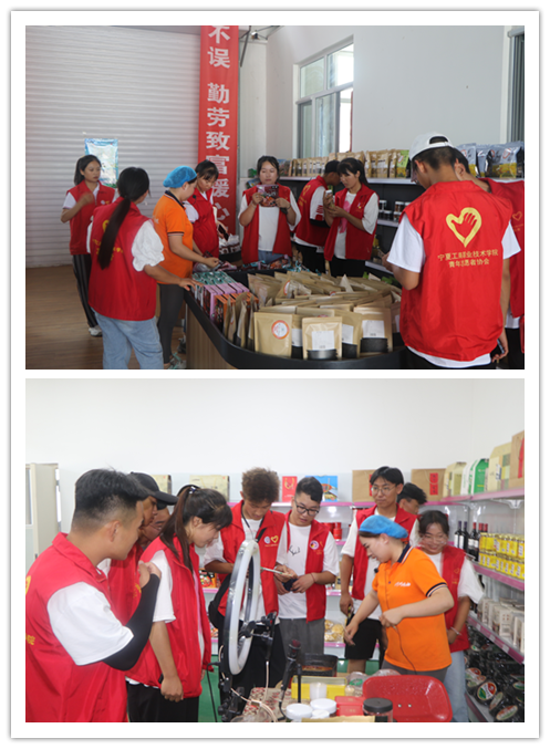 來到閩寧鎮后,學院暑期實踐隊隊員們先后在閩寧鎮史館、趙鴻文化大院、禾美扶貧車間等地參觀學習,對閩寧對口幫扶的艱辛歷程有了更加全面深刻的了解。在閩寧鎮黨史館,隊員們在參觀中認真聽、用心悟,詳細了解黨和政府在閩寧鎮移民搬遷、脫貧攻堅過程中做出的切實舉措和偉大實踐,深切感受閩寧鎮從風卷黃沙跑的“干沙灘”,變成產業興旺、百姓富裕的“金沙灘”的不平凡的發展歷程;在趙鴻文化大院,隊員們打卡《山海情》,了解閩寧鎮風土人情,學習移民群眾攻堅克難、自力更生的可貴品格,體會移民搬遷工程給寧夏群眾生活帶來的巨大變化,親眼見證移民群眾穩得住、有就業、能致富的新生活。離開趙鴻文化大院,隊員們在閩寧禾美電商扶貧車間,參觀了解車間工作的流水線后,車間直播帶貨的主播熱情邀請大家品嘗特色美食,隊員們也詳細了解了主播工作流程和農產品的銷售情況,不少人還選購了車間生產的扶貧產品。