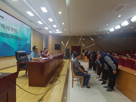 在企業、學院、學生的共同見證下,各方代表上臺簽訂三方協議,在熱烈的氣氛中舉行了拜師儀式。