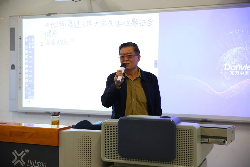 一間普通的教室,一手樸素的板書,關校長小立講臺,帶來深刻的思想。他別開生面的詢問學生們在校期間是否感到迷茫,關于大學生活和未來發展是否疑惑。學生們在他關切的言語中,從一開始的拘謹,逐漸敞開心懷,向校長傾訴他們心中的問題。