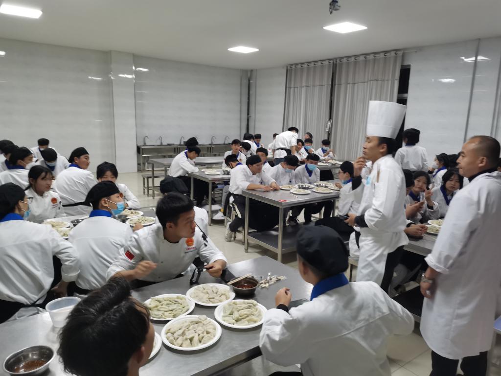 學院16名駐守在學校的老師和部分學生代表齊聚烹飪實訓中心,一塊包餃子。在歡樂融洽的氣氛中,感受著家一般的溫暖。同學們圍坐在老師的周圍,在專業老師的指導下包著各種形狀的餃子。包餃子、煮餃子、吃餃子,有付出有收獲,吃著自己包的香噴噴的餃子,同學們感受到了分外的喜悅和集體的溫暖。小小的餃子,傳遞著大大的關愛,也裝滿了學生的快樂心情。