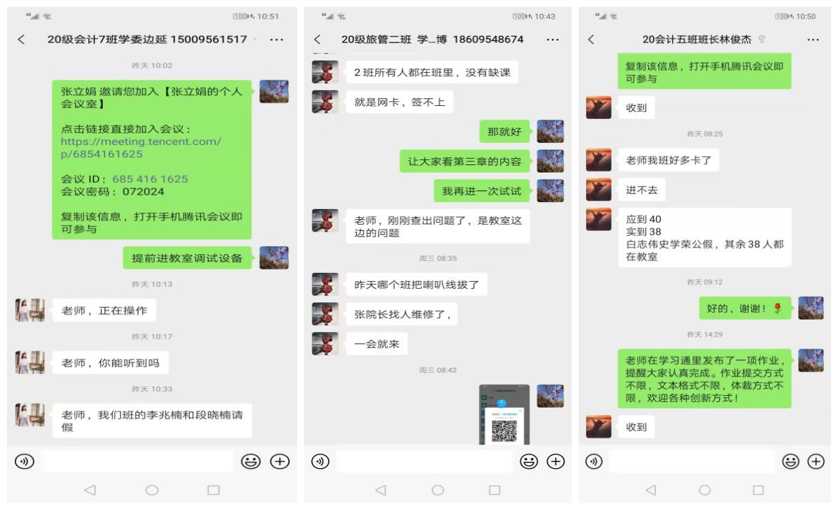 師生齊心協(xié)力,育人效果顯著。在這次大考面前,不但考驗了我們的老師,更加考驗了學(xué)生。面對沒有老師在教室的學(xué)生,每個班的班委盡職盡責(zé),每天在上課前幫老師調(diào)試教室里設(shè)備,調(diào)試音響效果;幫老師點名,負責(zé)拍照上傳,監(jiān)督教室里聽課學(xué)生的狀態(tài),充分彰顯了新時代青年人的責(zé)任擔(dān)當(dāng)。