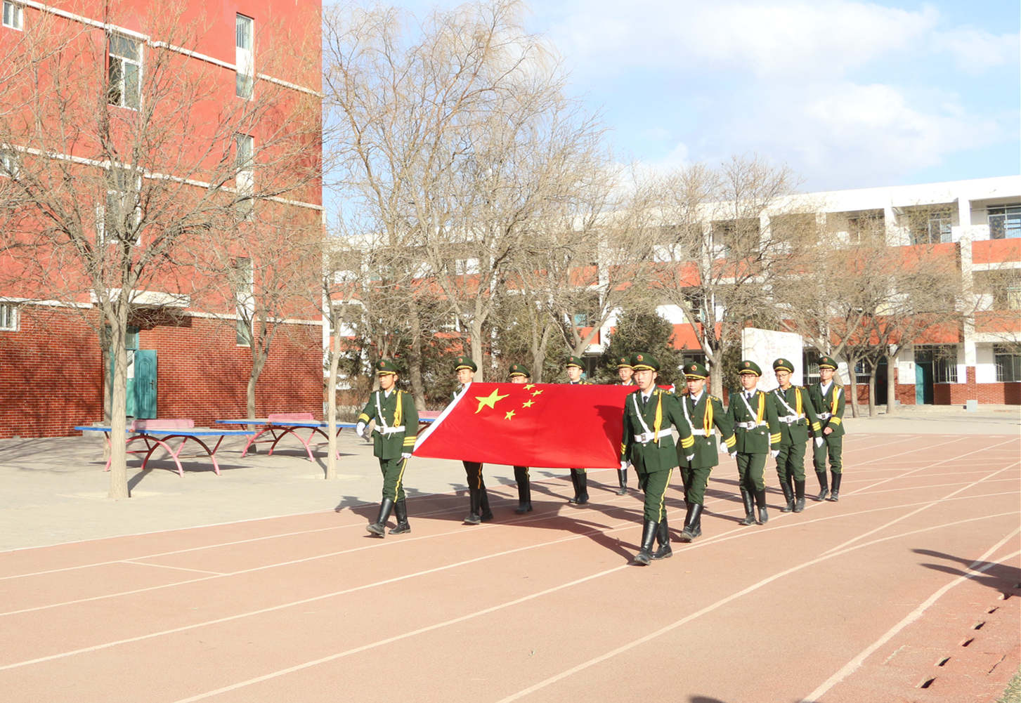 為了充分發(fā)揮學校青少年軍事綜合實踐基地教育引領作用,進一步推動學校“雙高”建設任務。11月29日,學校國防教育中心赴銀川市第八中學開展了主題升國旗活動。