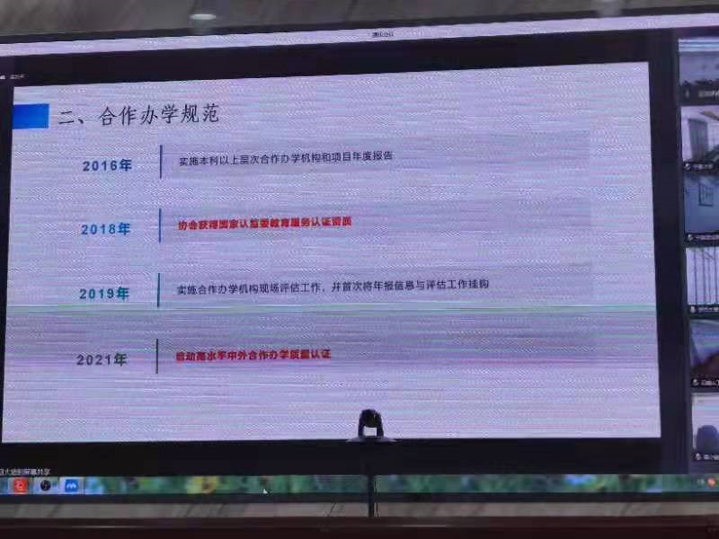 為推動建設(shè)一批高水平中外合作辦學(xué)項目(機(jī)構(gòu)),構(gòu)建科學(xué)的國際化人才培養(yǎng)模式,全面提高自治區(qū)教育對外開放水平,自治區(qū)教育廳于2021年12月15日舉辦中外合作辦學(xué)政策及實踐線上專題講座,學(xué)校作為國家級雙高建設(shè)單位參加會議。繼續(xù)教育處(對外交流處)、教務(wù)處、財務(wù)處、能源化工學(xué)院等相關(guān)人員參加專題講座。