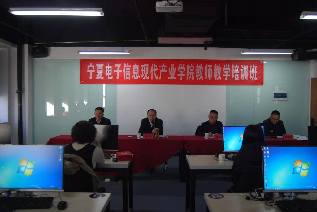 12月20日,由來自全區13所職業院校36名教師參加的寧夏電子信息現代產業學院首屆教師教學培訓工作圓滿結束。自治區教育工委副書記李瑋、職業教育與成人教育處副處長宋國平和二級調研員范占平,寧夏工商職業技術學院副校長陳志懷、信息技術學院院長閆寧,寧夏云立方科技有限公司梁明道董事長等相關領導參加了結業儀式。