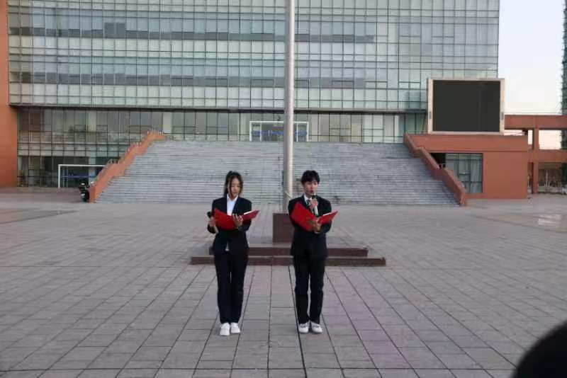 國歌響起,國旗護衛隊將國旗緩緩升起。隨后由學生代表高鑫,海國梅,馬華,谷東澤帶來朗誦《青春中國》,號召廣大學子作為新時代的中國青年,要銘記黨史,不忘初心、牢記使命,不斷增強責任感和使命感,更要堅定理想信念,牢記“愛國、勵志、求真、力行”,抓住一切機遇,把好人生的“方向盤”,為新時代貢獻青春力量。