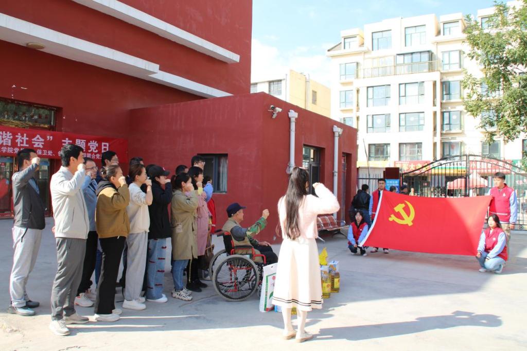 九九重陽節,濃濃敬老情。10月18日下午,在重陽節來臨之際,能源化工學院黨總支與保衛處、創新創業學院聯合黨支部師生黨員、入黨積極分子帶著米面油等生活日用品,到銀川市西夏區新天地長者養護中心,進行志愿慰問并聯合開展“弘揚敬老美德 構建和諧社會”主題黨日活動。