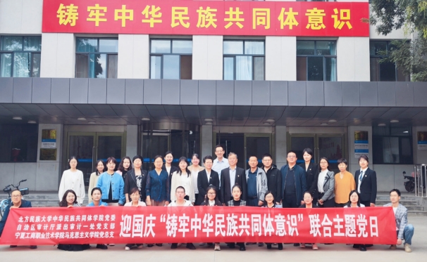 在慶祝中華人民共和國成立74周年之際,為深入貫徹落實習近平總書記關于鑄牢中華民族共同體意識的重要論述與習近平總書記關于加強和改進民族工作的重要思想,進一步做好自治區第40個“民族團結進步月”宣傳教育工作,進一步引導廣大黨員樹立正確的國家觀、歷史觀、民族觀、文化觀、宗教觀,不斷增進“五個認同”。9月27日下午,寧夏工商職業技術學院馬克思主義學院黨總支、自治區審計廳派出審計一處黨支部、北方民族大學中華民族共同體學院黨委聯合開展了迎國慶“鑄牢中華民族共同體意識”主題黨日活動。