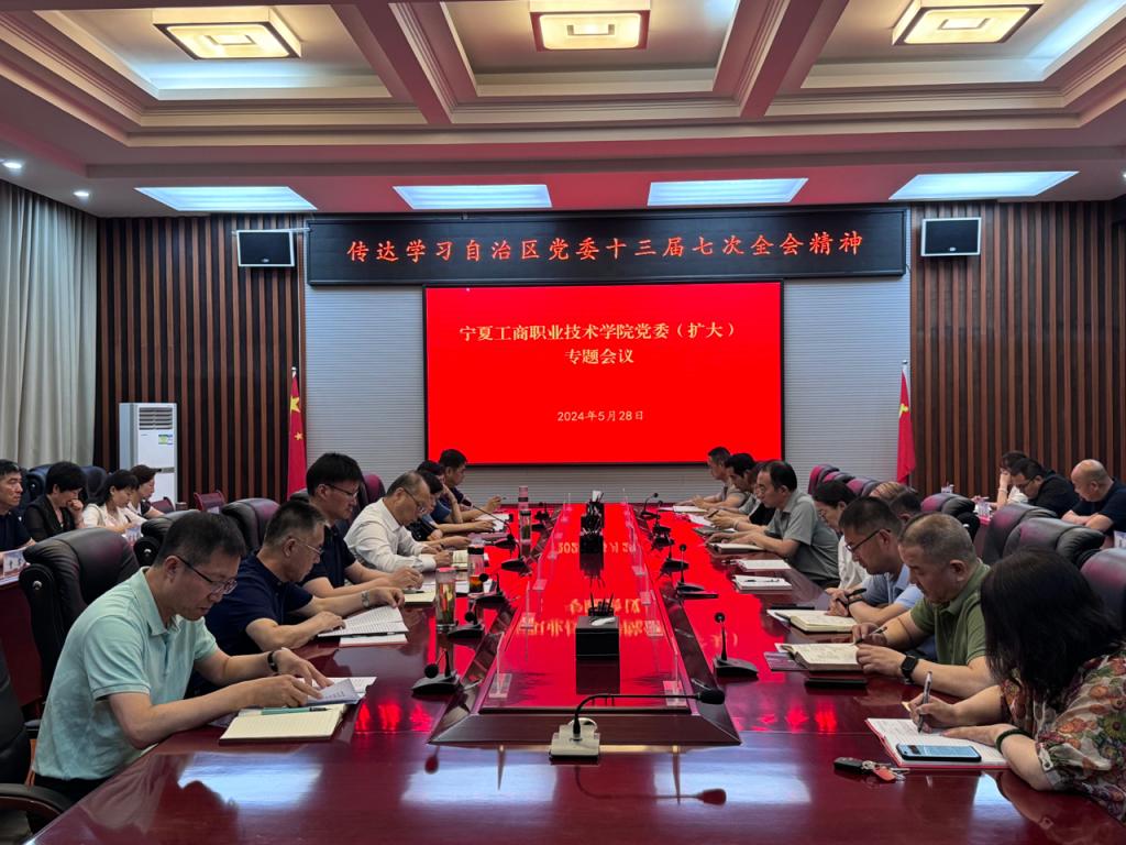 5月28日下午,學院召開黨委(擴大)專題會議,傳達學習自治區黨委十三屆七次全會公報。受黨委書記馬維敏委托,學院黨委副書記、院長郭少新主持會議,全體院領導、各部門、二級學院負責人參加了會議。