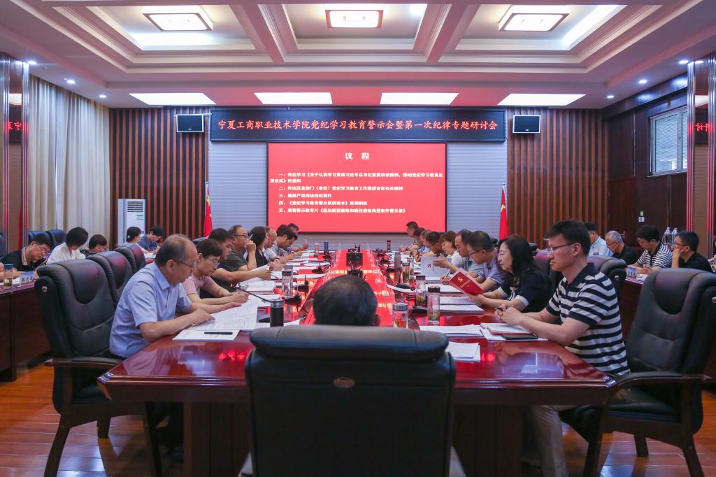 6月14日,寧夏工商職業技術學院舉辦了黨紀學習教育警示會暨專題研討會,學院領導班子成員、全體中層正職干部參加了會議。