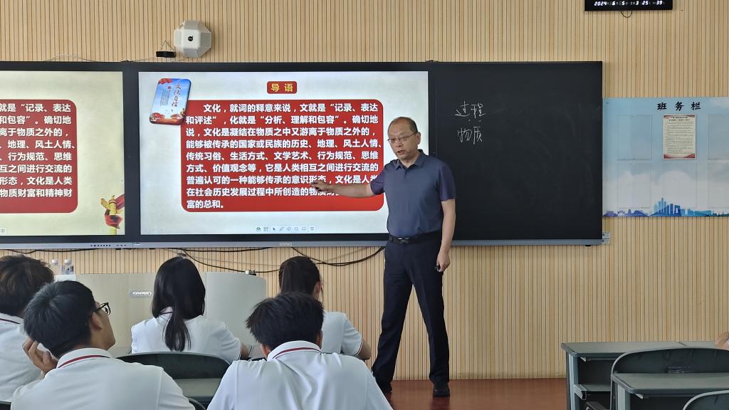 郭院長(zhǎng)在黨課講授中引入政治學(xué)、哲學(xué)、歷史學(xué)、經(jīng)濟(jì)學(xué)等多學(xué)科知識(shí),并結(jié)合當(dāng)前世界格局、中國(guó)領(lǐng)先全球的科學(xué)技術(shù)、當(dāng)前國(guó)內(nèi)的優(yōu)秀影視作品等實(shí)際案例,為同學(xué)們深入淺出地解釋了文化自信的重要性和新時(shí)代青年肩負(fù)的歷史使命。郭院長(zhǎng)在講座中,通過(guò)黑板板書書寫關(guān)鍵詞匯,并提出文化自信相關(guān)問(wèn)題,課堂上同學(xué)們積極回答問(wèn)題并主動(dòng)與院長(zhǎng)交流,課堂氣氛非常活躍。最后,郭院長(zhǎng)希望同學(xué)們能夠?qū)W而思,深入學(xué)習(xí)中華優(yōu)秀傳統(tǒng)文化,增強(qiáng)文化自信,踔厲奮發(fā)、勇毅前行,努力成長(zhǎng)為時(shí)代的奮斗者、奉獻(xiàn)者和追夢(mèng)者。