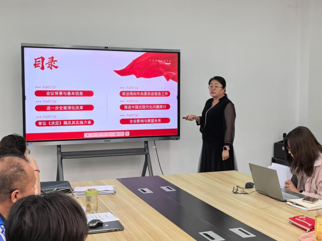 為深入學習宣傳貫徹黨的二十屆三中全會精神,引導黨員干部全面把握全會精神實質,推動全會精神入腦入心,9月4日,旅游管理學院教師黨支部開展了“學習貫徹黨的二十屆三中全會精神”專題學習會議暨支部書記講黨課活動,會議由支部書記蘇黎主持,全體黨員參加。