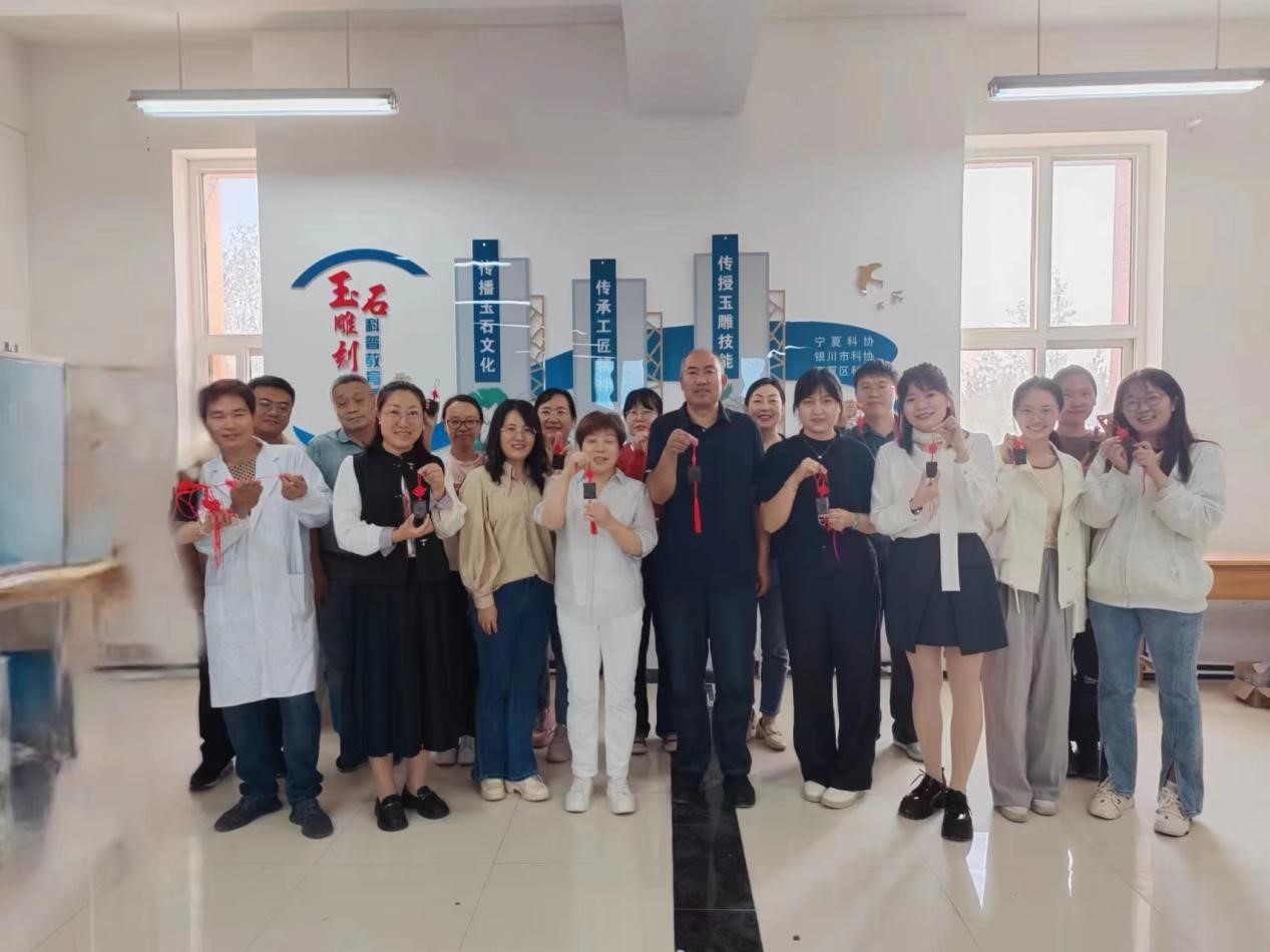 活動共分5個環節,師生故事暖心田分享環節邀請了回族教師代表馬周賢和學生代表杜敏,他們分享了在學習生活中經歷或感受到的民族團結故事。這些真實生動的故事增進了師生之間的了解和信任。集體學習環節,商貿學院副院長曲勁亮領學了習近平總書記在全國教育大會上的重要講話;商貿學院教師黨支部委員郝紅艷領學了《鑄牢中華民族共同體意識 推進新時代黨的民族工作高質量發展》。隨后商貿學院教師黨支部黨員代表李坤結合工作實際分享了學習心得。學習研討結束后,黨員同志們到15號樓進行了珠寶玉石科普教育基地的參觀展示和賀蘭石雕刻及編繩體驗活動。“團結如山,堅如賀蘭”,在專業老師的指導下,大家共同創作富含民族團結內涵的賀蘭石作品。這一過程讓黨員們將民族團結的理念融入作品中,深刻體會到了傳統文化與現代生活的有機結合,增強了對中華民族共同體的認同感和歸屬感。在完成賀蘭石雕刻作品后,黨員們緊接著進行編繩活動。將編制的繩結飾品裝點在自己的賀蘭石雕刻作品上,寓意“編繩連心,系繩同脈”,進一步將文化元素融入作品之中,使作品更具意義。