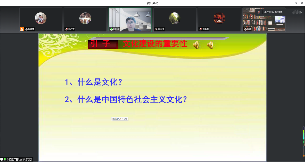 何如洋老師以文化霸權(quán)作為案例引入,圍繞什么是文化,什么是中國(guó)特色社會(huì)主義文化重點(diǎn)講解了文化是一個(gè)國(guó)家、一個(gè)民族的靈魂。