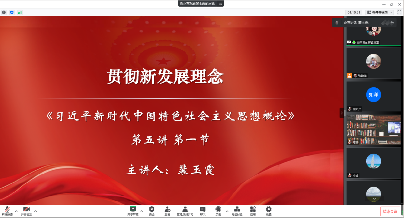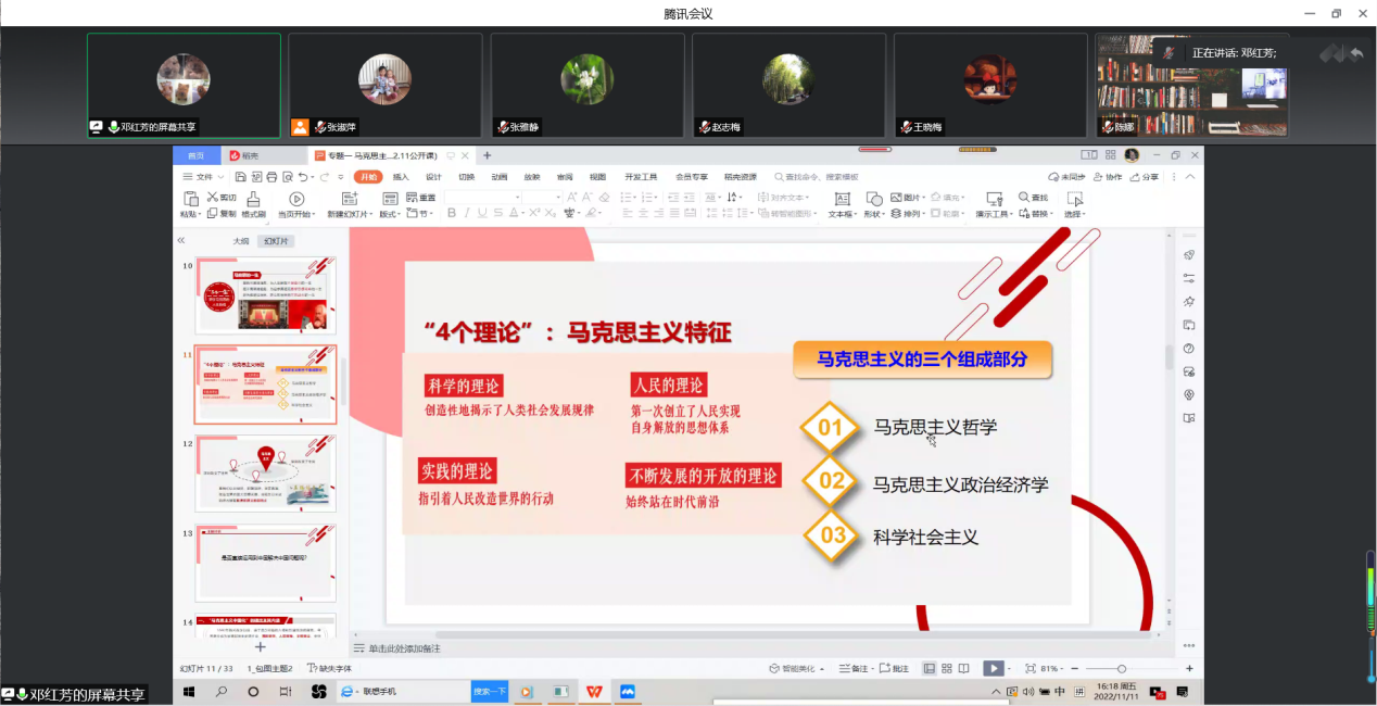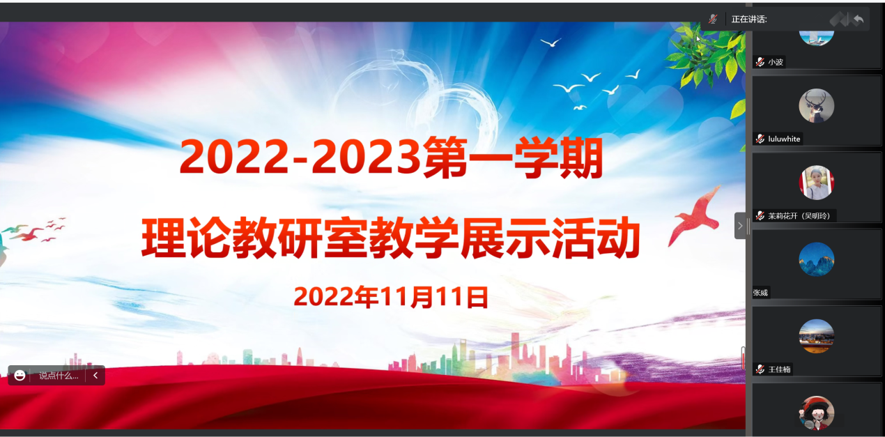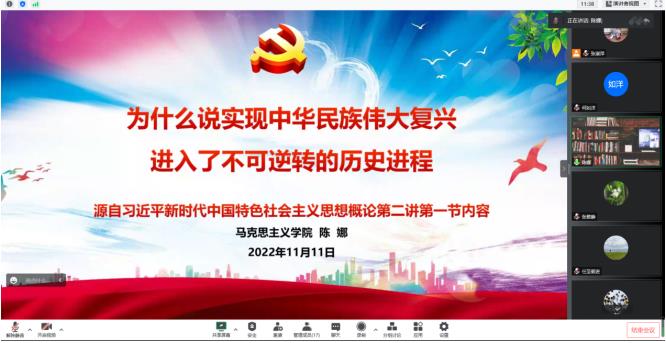 為堅(jiān)持不懈用習(xí)近平新時(shí)代中國(guó)特色社會(huì)主義思想鑄魂育人,辦好落實(shí)立德樹人根本任務(wù)的關(guān)鍵課程,推進(jìn)雙高建設(shè)暨提質(zhì)培優(yōu)思想政治教育教學(xué)任務(wù)落地落實(shí),提高教學(xué)質(zhì)量,把道理講深、講透、講活,以提升思政課教師的教學(xué)水平。2022年11月11日下午,馬克思主義學(xué)院理論教研室教學(xué)展示活動(dòng)于線上順利舉行?;顒?dòng)由理論教研室主任張淑萍主持。
