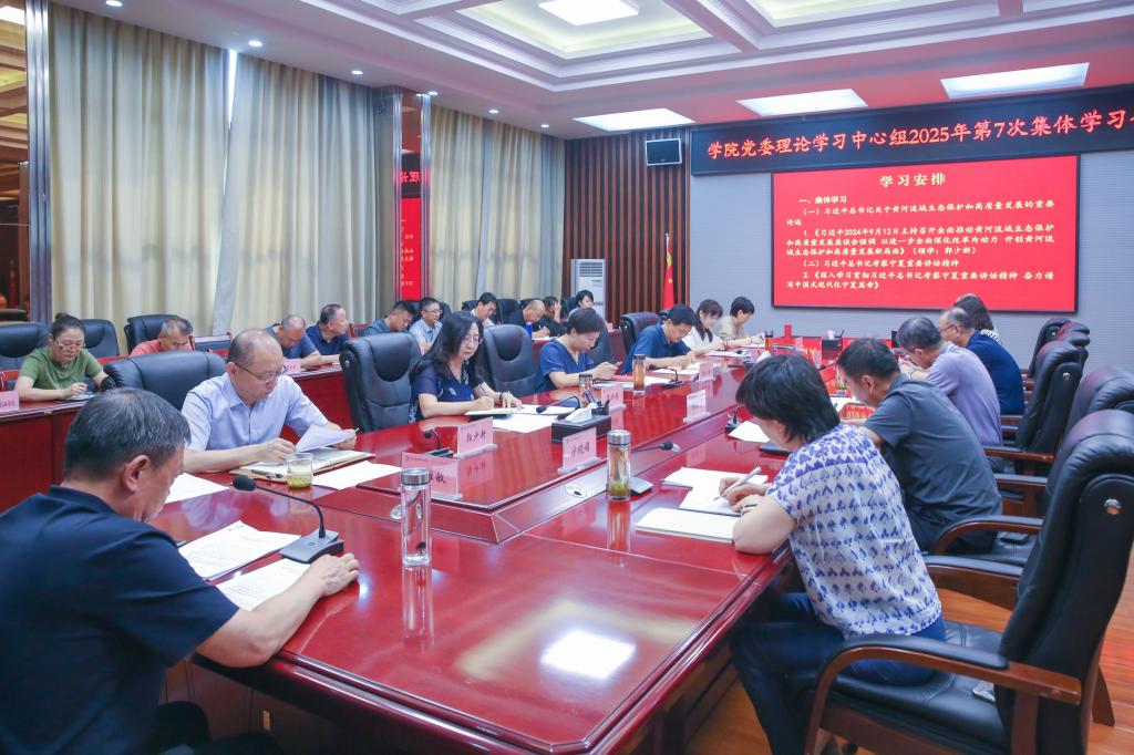 7月10日,學校黨委召開理論學習中心組2025年第7次集體學習會,重點圍繞習近平總書記關于黃河流域生態保護和高質量發展的重要論述、習近平總書記考察寧夏重要講話精神以及扎實開展深入貫徹中央八項規定精神學習教育進行專題學習。黨委書記馬維敏主持會議并講話。學校黨委理論學習中心組成員、各行政教輔部門負責人、各學院書記及院長參加。