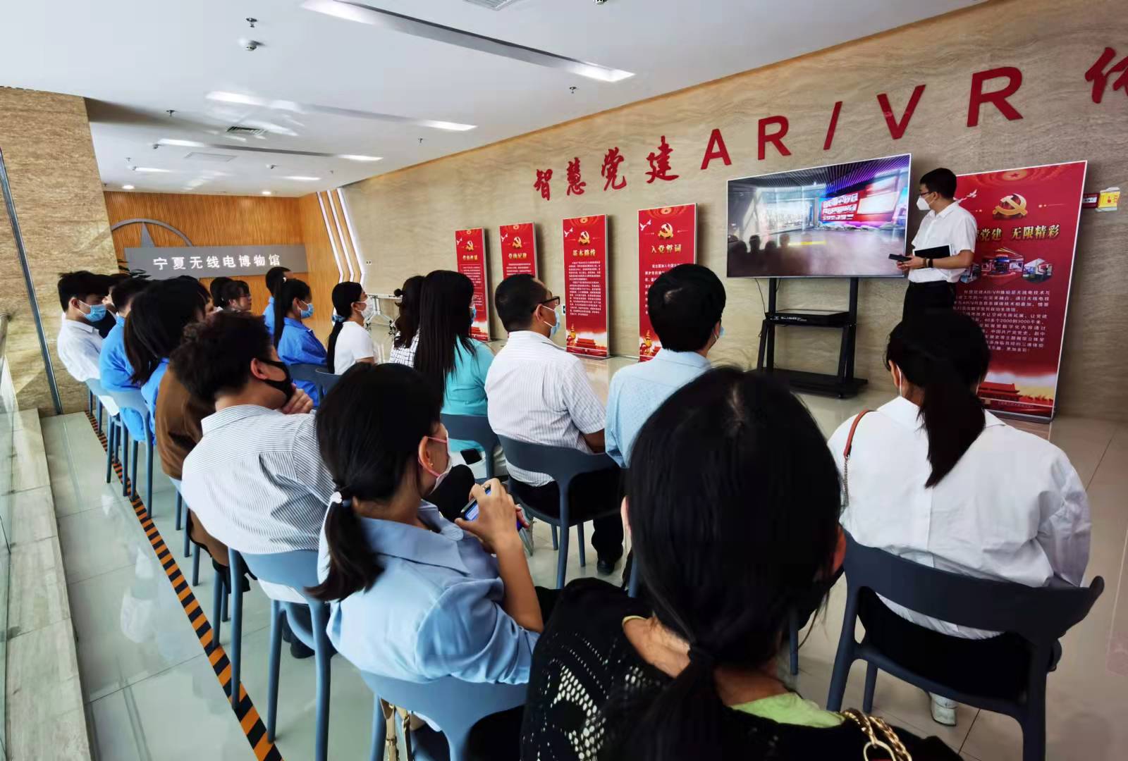 寧夏無線電博物館設(shè)有人類與通信、世界無線電發(fā)展史、中國無線電發(fā)展史、寧夏無線電發(fā)展史、無線電技術(shù)應(yīng)用、無線電未來展望等8個板塊。館內(nèi)現(xiàn)有實物展品500余件,圖片影像資料超1000件,主要為各時期經(jīng)典的無線電通信設(shè)備、珍貴圖文以及科普影音作品等。全體黨員師生通過實物展示、圖片影像、VR體驗、3D全息投影等形式學(xué)習(xí)了無線電發(fā)展史,特別是無線電技術(shù)在中國革命建設(shè)和發(fā)展過程中起到的關(guān)鍵作用。通過參觀學(xué)習(xí),全體黨員教師和學(xué)生深刻感受了無線電發(fā)展的非凡歷程及取得的輝煌成就。