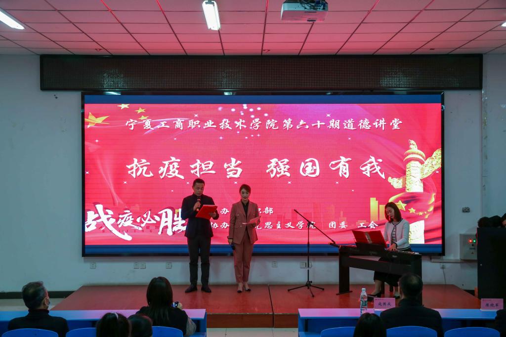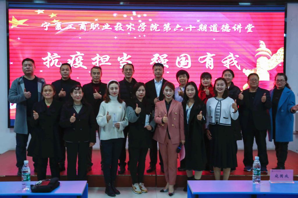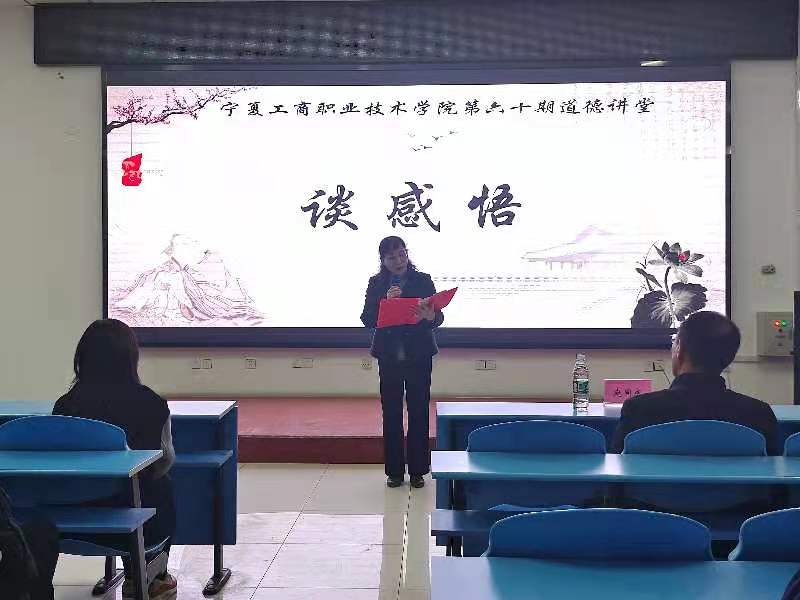 11月18日,由馬克思主義學院、中職部承辦,團委、工會共同參與的寧夏工商職業技術學院第六十期道德講堂如約而至,學校領導陳曉軍、宛國成、寧曉娟,相關處室和中職部近百名同學參加了此次道德講堂活動。